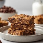 These no-bake chocolate oat energy bars are excellent for making ahead, making your snack prep a breeze. Once cut, store the bars in an airtight container at room temperature for up to 5 days. If your kitchen is particularly warm, or if you prefer a firmer texture, you can store them in the refrigerator for up to 2 weeks.